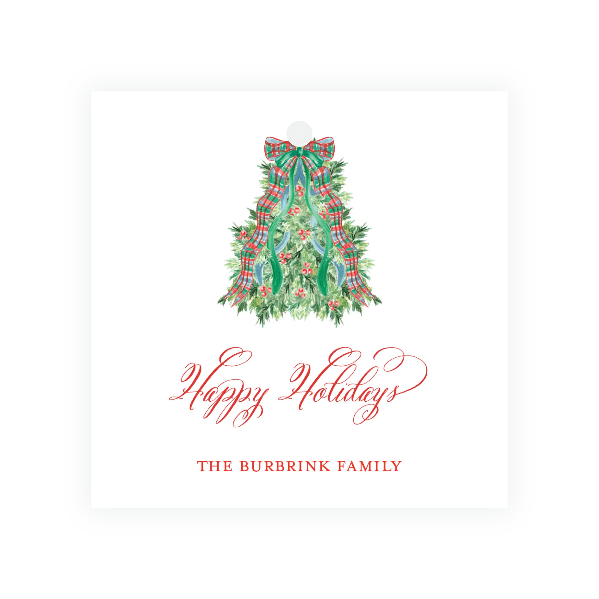 Christmas Plaid Tree Square Gift Tag
